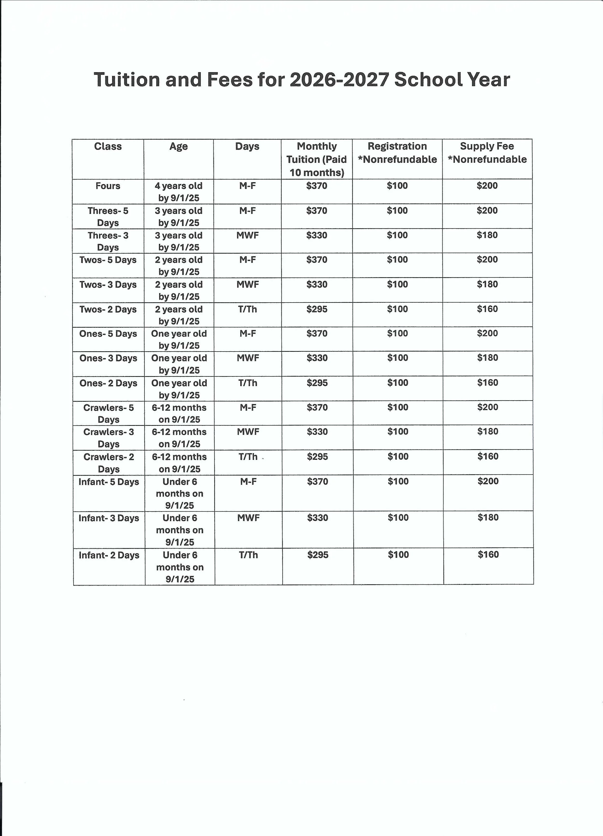We do not offer early drop-off or extended hours.